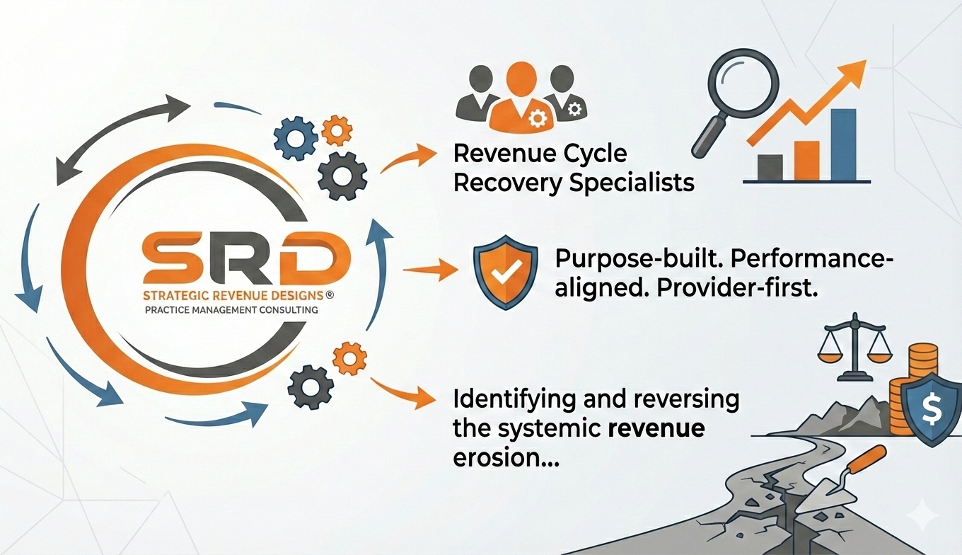 Strategic Revenue Designs (SRD) identifies and recovers systemic revenue losses driven by payer reimbursement avoidance tactics and system-level misalignment between payer rules, billing logic, and contractual payment frameworks—often persisting beyond the capabilities of standard billing processes.