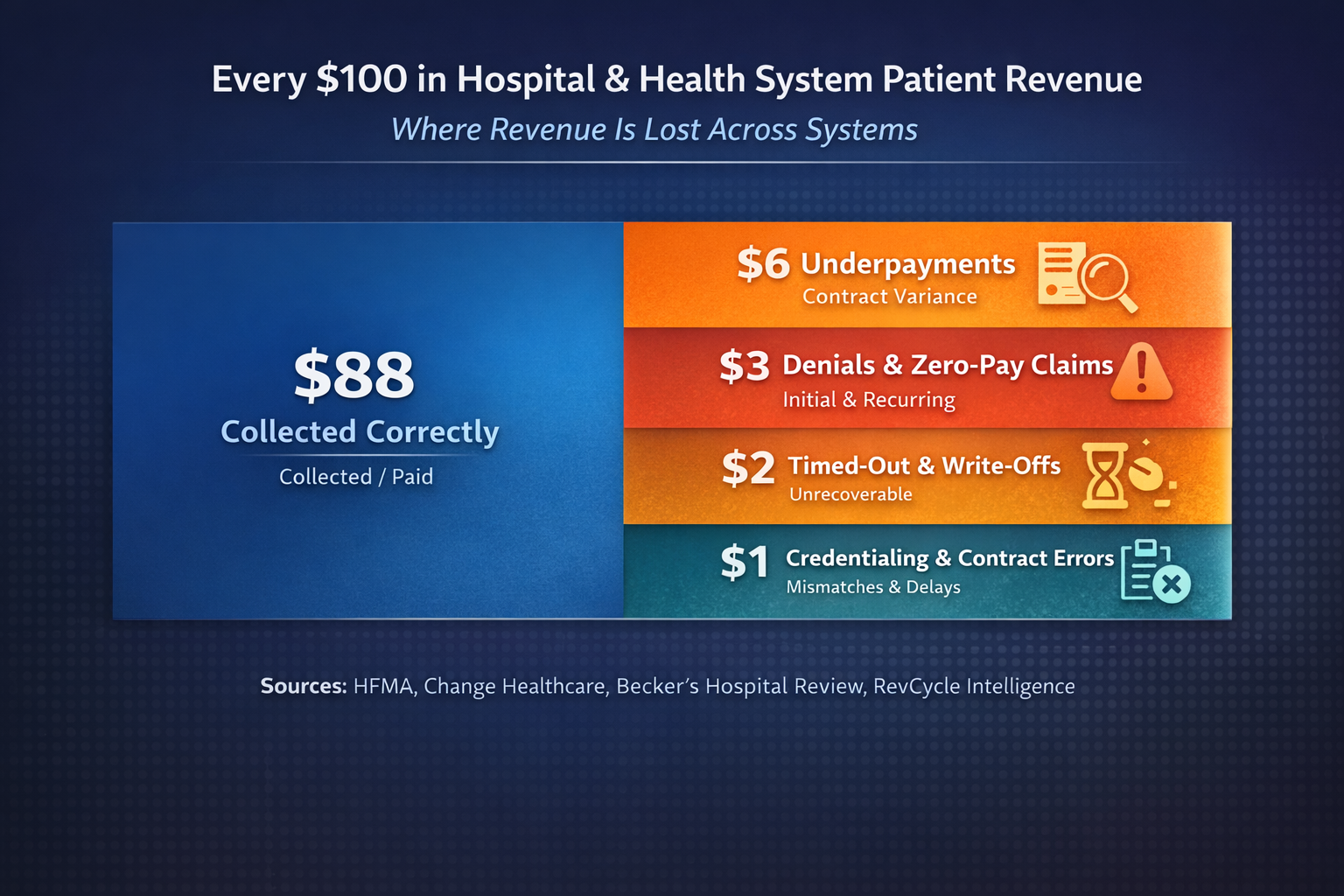 The average provider loses roughly one-tenth of net patient revenue to systemic underpayment embedded in payer behavior, contract ambiguity, and claim adjudication.